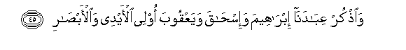 45. Waothkur AAibadana ibraheema wa-ishaqa wayaAAqooba olee al-aydee waal-absari