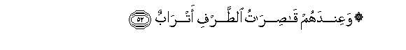 52. WaAAindahum qasiratu alttarfi atrabun