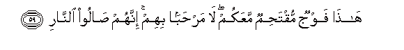 59. Hatha fawjun muqtahimun maAAakum la marhaban bihim innahum saloo alnnari