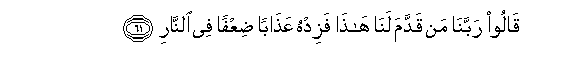 61. Qaloo rabbana man qaddama lana hatha fazidhu AAathaban diAAfan fee alnnari