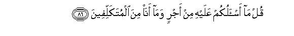 86. Qul ma as-alukum AAalayhi min ajrin wama ana mina almutakallifeena