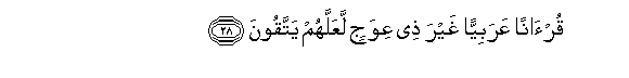 28. Qur-anan AAarabiyyan ghayra thee AAiwajin laAAallahum yattaqoona
