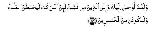 65. Walaqad oohiya ilayka wa-ila allatheena min qablika la-in ashrakta layahbatanna AAamaluka walatakoonanna mina alkhasireena