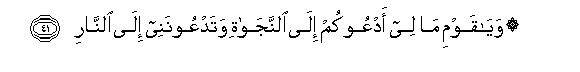 41. Waya qawmi malee adAAookum ila alnnajati watadAAoonanee ila alnnari