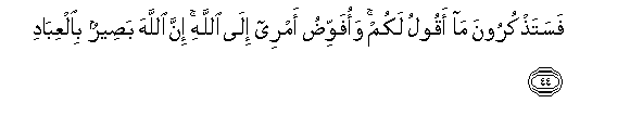 44. Fasatathkuroona ma aqoolu lakum waofawwidu amree ila Allahi inna Allaha baseerun bialAAibadi