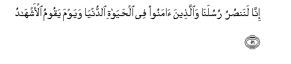 51. Inna lanansuru rusulana waallatheena amanoo fee alhayati alddunya wayawma yaqoomu al-ashhadu