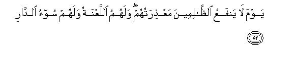 52. Yawma la yanfaAAu alththalimeena maAAthiratuhum walahumu allaAAnatu walahum soo-o alddari