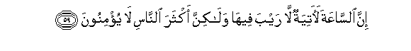 59. Inna alssaAAata laatiyatun la rayba feeha walakinna akthara alnnasi la yu/minoona
