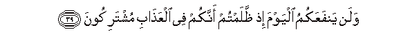 39. Walan yanfaAAakumu alyawma ith thalamtum annakum fee alAAathabi mushtarikoona