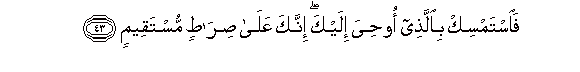 43. Faistamsik biallathee oohiya ilayka innaka AAala siratin mustaqeemin