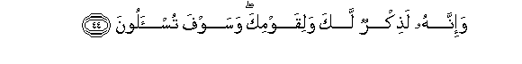 44. Wa-innahu lathikrun laka waliqawmika wasawfa tus-aloona