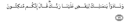 77. Wanadaw ya maliku liyaqdi AAalayna rabbuka qala innakum makithoona