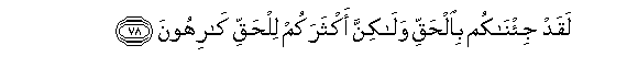 78. Laqad ji/nakum bialhaqqi walakinna aktharakum lilhaqqi karihoona
