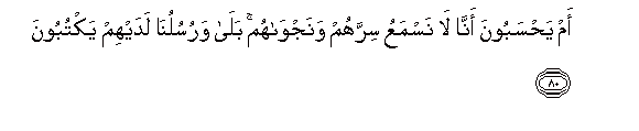 80. Am yahsaboona anna la nasmaAAu sirrahum wanajwahum bala warusuluna ladayhim yaktuboona