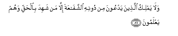 86. Wala yamliku allatheena yadAAoona min doonihi alshshafaAAata illa man shahida bialhaqqi wahum yaAAlamoona