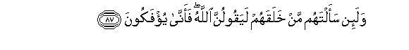 87. Wala-in saaltahum man khalaqahum layaqoolunna Allahu faanna yu/fakoona
