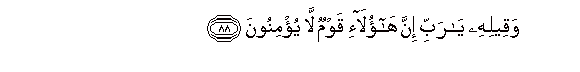 88. Waqeelihi ya rabbi inna haola-i qawmun la yu/minoona