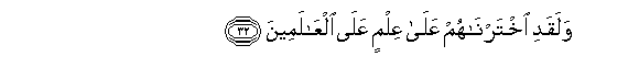 32. Walaqadi ikhtarnahum AAala AAilmin AAala alAAalameena