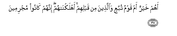37. Ahum khayrun am qawmu tubbaAAin waallatheena min qablihim ahlaknahum innahum kanoo mujrimeena