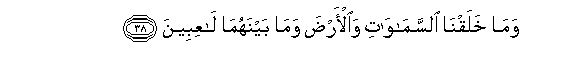 38. Wama khalaqna alssamawati waal-arda wama baynahuma laAAibeena