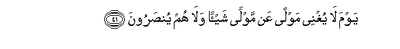 41. Yawma la yughnee mawlan AAan mawlan shay-an wala hum yunsaroona