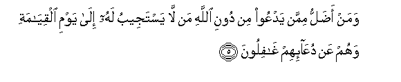5. Waman adallu mimman yadAAoo min dooni Allahi man la yastajeebu lahu ila yawmi alqiyamati wahum AAan duAAa-ihim ghafiloona