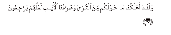 27. Walaqad ahlakna ma hawlakum mina alqura wasarrafna al-ayati laAAallahum yarjiAAoona