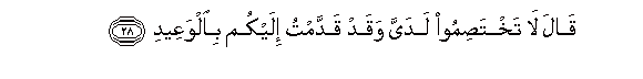 28. Qala la takhtasimoo ladayya waqad qaddamtu ilaykum bialwaAAeedi