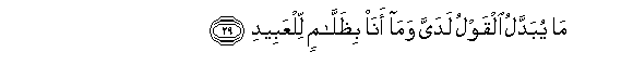 29. Ma yubaddalu alqawlu ladayya wama ana bithallamin lilAAabeedi