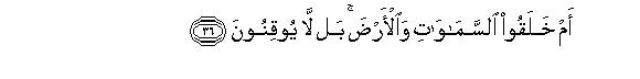 36. Am khalaqoo alssamawati waal-arda bal la yooqinoona