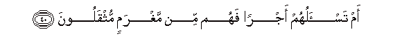 40. Am tas-aluhum ajran fahum min maghramin muthqaloona