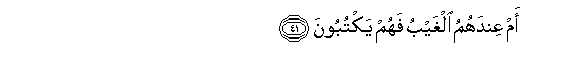 41. Am AAindahumu alghaybu fahum yaktuboona