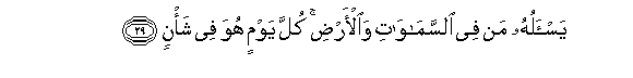 29. Yas-aluhu man fee alssamawati waal-ardi kulla yawmin huwa fee sha/nin