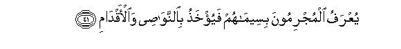 41. YuAArafu almujrimoona biseemahum fayu/khathu bialnnawasee waal-aqdami