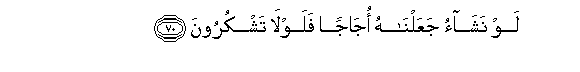 70. Law nashao jaAAalnahu ojajan falawla tashkuroona