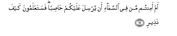 17. Am amintum man fee alssama-i an yursila AAalaykum hasiban fasataAAlamoona kayfa natheeri