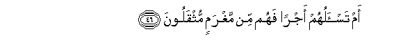 46. Am tas-aluhum ajran fahum min maghramin muthqaloona