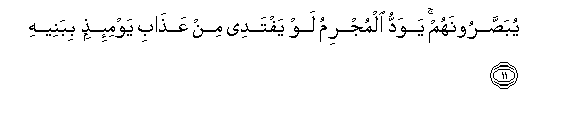 11. Yubassaroonahum yawaddu almujrimu law yaftadee min AAathabi yawmi-ithin bibaneehi