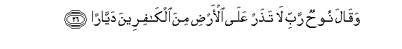 26. Waqala noohun rabbi la tathar AAala al-ardi mina alkafireena dayyaran