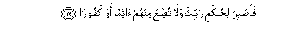24. Faisbir lihukmi rabbika wala tutiAA minhum athiman aw kafooran