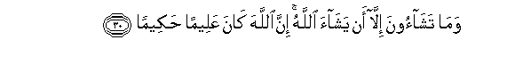 30. Wama tashaoona illa an yashaa Allahu inna Allaha kana AAaleeman hakeeman