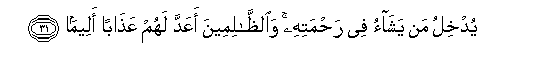 31. Yudkhilu man yashao fee rahmatihi waalththalimeena aAAadda lahum AAathaban aleeman