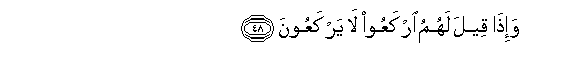 48. Wa-itha qeela lahumu irkaAAoo la yarkaAAoona