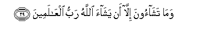 29. Wama tashaoona illa an yashaa Allahu rabbu alAAalameena