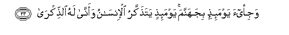 23. Wajee-a yawma-ithin bijahannama yawma-ithin yatathakkaru al-insanu waanna lahu alththikra
