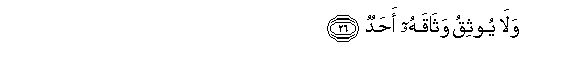 26. Wala yoothiqu wathaqahu ahadun