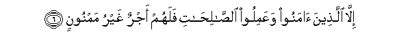 6. Illa allatheena amanoo waAAamiloo alssalihati falahum ajrun ghayru mamnoonin
