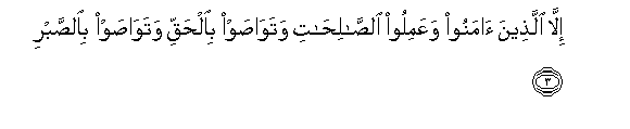 3. Illa allatheena amanoo waAAamiloo alssalihati watawasaw bialhaqqi watawasaw bialssabri