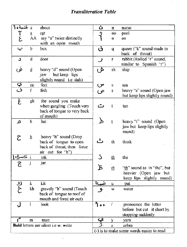 and transcriptions of the Qur'an at this site.