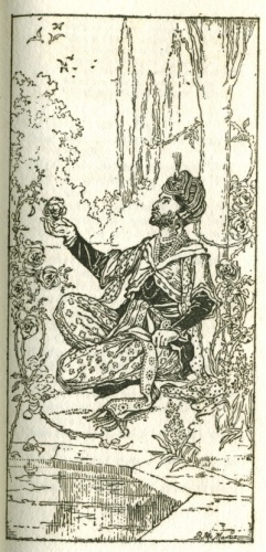 Sat a Lover solitary Self-discoursing in a Corner, Passionate and ever-changing Invocation pouring out; Sometimes Sun and Moon; and sometimes Under Hyacinth half-hidden Roses; or the lofty Cypress, And the little Weed below. Nightingaling thus a Noodle Heard him, and, completely puzzled, "What!" quoth he, "And you, a Lover, "Raving not about your Mistress, "But about the Moon and Roses!" Answer’d he; "Oh thou that aimest